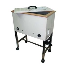 Equipo consistente en un mueble metálico transportable con una cuba extraíble de acero inoxidable donde se colocan las placas de parafina. El equipo calienta la parafina mediante una resistencia que proporciona un calor suave a la cuba, asegurando una homogénea distribución que evita quemar la parafina. No usa aceites u otros líquidos para calentar la parafina. Dispone de termostato de calentamiento y otro de seguridad, termómetro y reloj avisador.